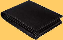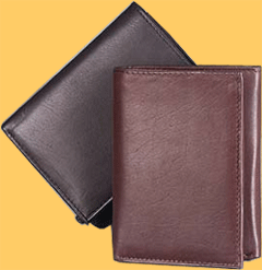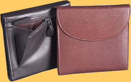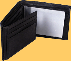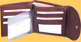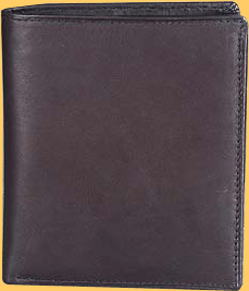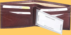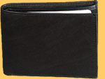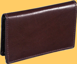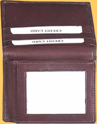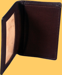or brown soft cow hide leather. Flip-open I.D. holder, 1 card